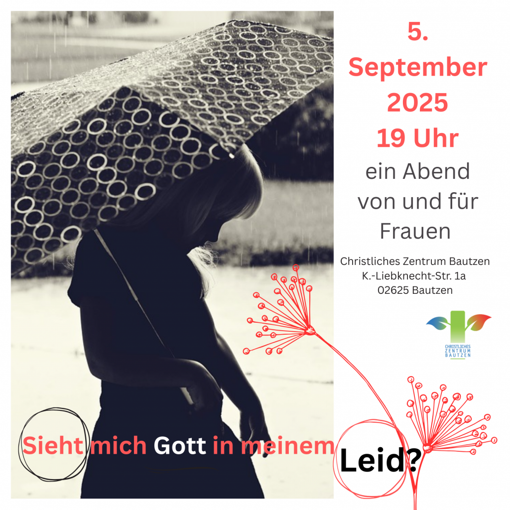 Plötzlich ist das Leben tragisch auf den Kopf gestellt, kein Halt mehr – oder doch? Stürme des Lebens machen nicht vor uns halt. Wir wollen gemeinsam auf die Suche nach Antworten gehen – mit Kirstin Kreuzritter (Dresden) und Iris Leister (Meißen)